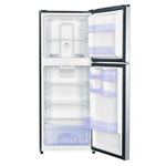 -Separate top freezer compartment with wire shelf for convenient frozen food storage