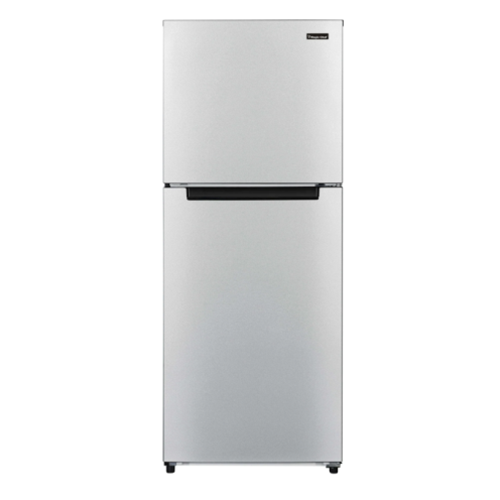 The Magic Chef 10.1 cu. ft. Top Freezer Refrigerator in platinum steel is the perfect in-between refrigerator; more spacious than a mini but more compact than a regular household unit. It is a suitable refrigerator for smaller kitchens, break rooms, office kitchenettes or anywhere with space constraints. It occupies a small footprint but offers numerous cold-storage options for foods and beverages, including a glass-covered crisper to keep produce fresh. It's equipped with two adjustable-height glass shelves in the refrigerator and one wire shelf in the freezer, with several other storage options built into the reversible doors.