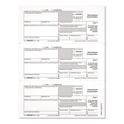 2024 1099-NEC Copy 1 or 2 Laser/Inkjet Tax Forms, 8.5 x 3.66, 3 Forms/Sheet, 150 Forms Total