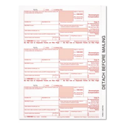 2024 1099-NEC Copy A Laser/Inkjet Tax Forms, 8.5 x 11.5, 3 Forms/Page, 150 Forms/Sheet