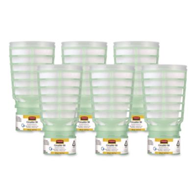 The Rubbermaid® Commercial CirculAir 90™ Pure scent refill is engineered to deliver reliable air care performance with verified recyclability. Refills provide a light, fresh fragrance. Made from a single material, the refill is recycle-stream-ready and requires no dismantling. Independently validated to meet key recycling system requirements and design guidelines in the USA. The refill and dispenser feature a battery-free design for uninterrupted performance and 60 days or more of maintenance-free fragrance. The passive refill supports indoor air quality. Each dispenser effectively covers mid-size washrooms with three to four stalls or fixtures, up to 6,000 cubic feet. Scent: Blue Splash; Physical Form: Liquid; Application: Automatic Odor Control; Volume Capacity: 48 mL.
