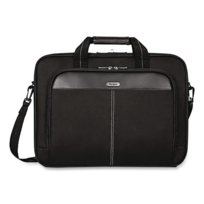 Thin, lightweight case equipped to store all of your essentials on the go. Ideal for the casual business executive, this functional case features a classic look. The spacious front pocket includes smartly organized compartments to store your smartphone, pens, business cards, adapters, cords and other accessories. Constructed of durable polyester material, the case includes metal, contoured zipper pulls, comfortable padded handles and shoulder strap. The large back slip pocket is great for storing files and documents while the included trolley strap makes it easy to stack this case onto rolling luggage. For Use With: Laptops; Color(s): Black; Color Family: Black; Material(s): Polyester.