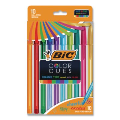 Color Cues Cristal Xtra Smooth Ballpoint Pen, Stick, Medium 1.2 mm, Assorted Ink and Barrel Colors, 10/Box