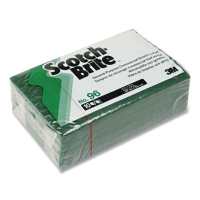 Open-texture, medium-abrasive green pad for general-purpose cleaning and scouring. Scours 2 to 3 times faster and is 2 to 3 times more durable than comparable non-3M medium duty green scouring pads. High-quality synthetic fiber will not rust or corrode. Replaces steel wool and metal sponges, won't leave metal slivers in hands or food. Scouring Pads/Sticks Type: Pad; Material(s): Fiber/Mineral/Resin; Size (W x L): 6 x 9; Color(s): Green.