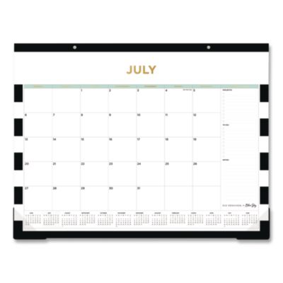 Day Designer Rugby Stripe Academic Desk Pad Calendar, 22 x 17, White/Black/Gold Sheets, 12-Month: July 2025 to June 2026
