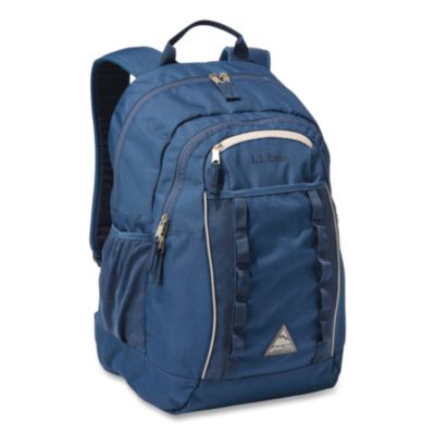 The trail-inspired, go-anywhere pack—the Bean's Explorer Backpack is a super versatile pack for school and all the other places kids are headed, now in a size designed for older students. We've taken the best of our trail packs and school packs and combined them into one highly versatile backpack featuring extra-tough fabric, hiking-pack comfort and classroom-ready details. Lots of storage and pockets inside and out help keep kids organized, including a handy "shove-it" front pocket that's great for last-minute items or an extra layer. Color(s): Mariner Blue/Classic Navy; Color Family: Blue; Material(s): Weatherproof Nylon; Carrying Handle: Yes.