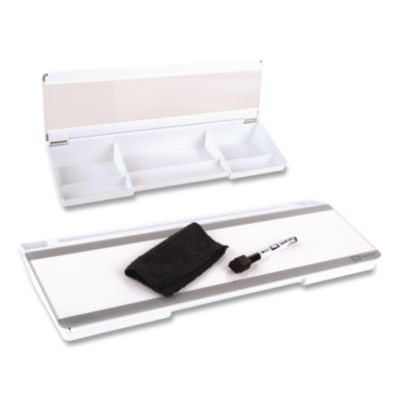 Declutter your space and personalize the way you take notes. The Flip-Top Glass Dry-Erase Desktop Pad has built-in storage for small desktop items. Plus, it comes with a variety of templates so you can manage a weekly calendar, track your to-do list or bucket important tasks. Board Surface Type(s): Dry Erase; Magnetic Board Surface: No; Surface Use Rating: Heavy/Frequent Use; Surface Material: Glass.