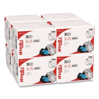 WypAll® is the #1 brand of dry disposable wipes in the US and Canada. WypAll® GeneralClean™ X60 multi-task cleaning cloths deliver superior performance in a lighter-weight design, making them ideal for general-purpose cleaning across industrial, commercial and automotive environments. Engineered with Hydroknit® technology, WypAll® X60 Cleaning Cloths absorb water fast for a visible clean and stay strong to handle everyday messes and tougher cleanups with ease—wet or dry. These versatile wipes handle grease, soil, sticky substances and residue without leaving behind adhesives or binders. Perfect for applying thinners and solvents or cleaning in tight spaces, WypAll® X60 Cleaning Cloths are durable enough for extended use yet disposable for convenience. When you need absorbency, strength, and value, WypAll® X60 Cleaning Cloths deliver. Quarterfold. Towel/Wipe Type: Folded Cloths; Fold Types: Quarter-Fold; Material(s): Cloth; Number of Plies: 1.