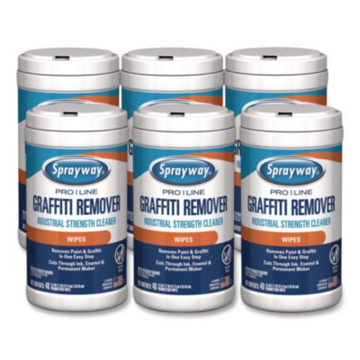 These heavy-duty wipes are designed to cut through stubborn marks, including enamel paint, on nearly any hard surface. Perfect for street crews, parks and rec, schools, transit authorities, utilities and sports facilities. For industrial and commercial use only. Powerful, ammonia-free formula removes graffiti fast. Towel/Wipe Type: Cleaning/Disinfecting Wipes; Fold Types: Z; Applicable Material: Graffiti Marks; Material(s): Cellulose Polyester Blend; Spun Lace Nonwoven.