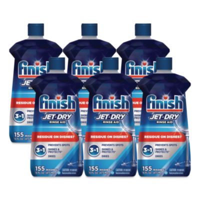 Simply fill your machine's rinse aid compartment with Finish Jet-Dry 3-in-1 to solve three problems at once. It rinses, dries and shines what detergent alone can't! Rinses away leftover food and film. Dries left behind water droplets. Clears spots for a brilliant shine. Easy to use, simply refill the rinse aid compartment every few weeks, not every wash. Application: Machine Dishwashing Rinse; Applicable Material: Dishes; Glasses; Utensils; Chemical Compound: Sodium Ethoxylate; Sodium Polycarboxylate; Citric Acid; Dirt Types: Detergent; Film; Food Residue; Mineral Scale; Spots.