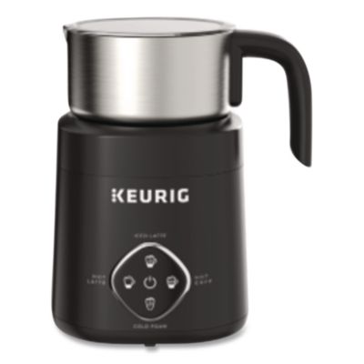 Enjoy rich and creamy dairy and non-dairy milk in all your favorite café-quality beverages. With a powerful motor and precision whisking you can quickly and easily froth milk for lattes, cappuccinos and more – including cold foam to create a café worthy masterpiece. Iced Latte, Hot Latte, Hot Cappuccino and Cold Foam buttons make it easy to create the drink of your choice. To use frother, brew any K-Cup® pod using a Keurig® single serve coffee maker. We recommend brewing a cup of coffee, tea or hot chocolate on either a 4 oz or 6 oz brew size and using the STRONG button. Fill frothing cup to 2 oz, 4 oz or 6 oz marking for cold foam, latte or cappuccino. Secure the lid on the frothing cup and place cup on frother base. Press the corresponding button on frother to begin frothing. The frother will stop automatically once frothing is complete. Pour desired amount of frothed milk into the coffee and spoon foam over the top. Enjoy! Number of Cups: 1; Warmer: Yes; Interior Volume Capacity: 10 oz; Width: 7.1".