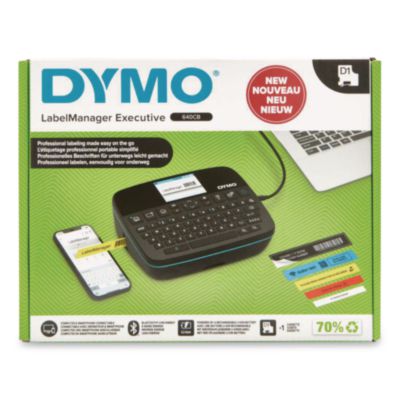 Experience the convenience of on-the-go labelling with the DYMO® LabelManager Executive 640 CB. Designed for mobile professionals, its rechargeable lithium-ion battery and compact design ensure effortless label creation wherever you are. Its textured grip offers comfort during extended use, reflecting our commitment to ergonomic excellence. With a high-resolution screen for unmatched readability and an intuitive and clear menu navigation for advanced accessibility, the LabelManager Executive 640 CB sets a new standard for label creation and customization. Additionally, the user-friendly interface and dual connectivity options, such as Bluetooth Low Energy technology and USB-C, allow you to save virtually limitless personalized labels through DYMO's mobile and desktop software applications, fostering a streamlined workflow and eliminating the need to pair your device. Whether organizing at your workspace or working in the field, the LabelManager Executive 640 CB empowers you with unparalleled efficiency and precision in labelling tasks. Label Maker Type: Desktop; Handheld; Prints Barcodes: Yes; Prints Postage: No; Power Source(s): Rechargeable Li-Ion Battery.