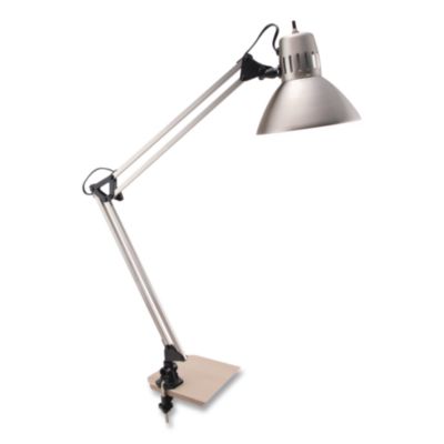 V-Light architect style clamp-on lamp uses a 10-Watt LED bulb (included) to offer good energy efficiency. Lamp features an elegant brushed metallic finish and offers a plastic clamp for a variety of mounting options. Lamp has adjustable swing arm positions as well as an on/off switch for user convenience. Base Color: Black; Height: 34"; Width: 5.5"; Depth: 7.5".