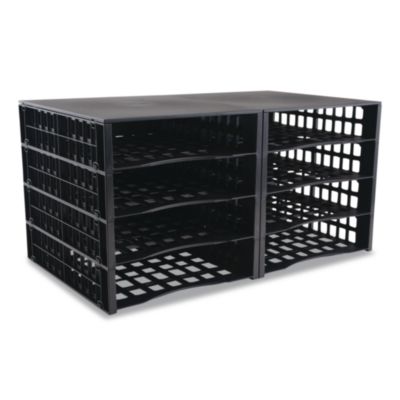 Mix and match compartments to create the perfect organizer to meet your needs. Invert one tray to create a double-sized compartment. This high-impact plastic tray is easy to clean and has a stylish design. Perfect to store and organize papers, mail, books, files and notebooks. Literature Sorter Type: Open Front; Number of Compartments: 8; Compartment Size: 10.25" x 12.25" x 2.6"; Material(s): Plastic.