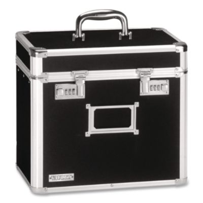 You'll have worry-free protection when you store and transport your files, valuables and other essentials in these sturdy cases. Combination locks provide convenient security. Chrome steel corners and aluminum body trim provide extra strength. Built-in rails accommodate hanging files. Label holder makes for easy identification of contents. Very Portable. Rubber feet prevent surface scuffing. Box Type: File Tote; Strength: Heavy-Duty; File Size Format: Letter; Width: 13.75".