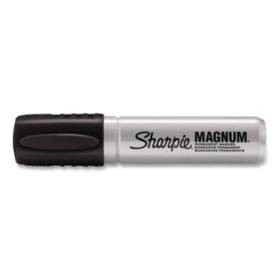 Sharpie® Magnum Chisel Tip Permanent Markers feature durable chisel tips made for industrial-strength marking jobs. This permanent marker writes on most surfaces including wet and oily surfaces. The durable plastic barrel withstands heavy use. Marker Ink Type: Permanent; Marker Tip Type: Chisel; Marker Tip Size (text): Broad; Marker Color(s): Black.