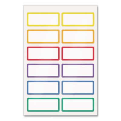 No-Iron Fabric Labels, Rainbow Border, Handwrite Only, 0.75 x 1.75, White, 12/Sheet, 2 Sheets/Pack