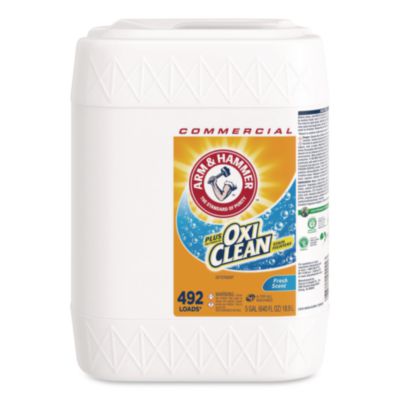 Value matters when it comes to stain remover laundry detergent. That's why Arm & Hammer™ Plus OxiClean is concentrated with 3x powerful stain fighters in every load. This concentrated liquid laundry detergent with Arm & Hammer™ freshness is supercharged with OxiClean stain fighters for effective stain lifting and whitening. It's a stain fighting laundry wash detergent you can rely on for five-in-one power, as it is a stain fighter, deep cleaner, whitener, brightener and lasting freshness all in one bottle. This liquid washing detergent cleans over 101 tough stains, and whitens and brightens with a lasting fresh scent. It is a low-sudsing formula of stain removal laundry detergent that rinses clean and is designed to work in both standard machines and today's energy conscious High Efficiency (HE) models. That's why this concentrated liquid stain remover detergent is a smart choice for powering out odors and tough stains. 492 Loads. Application: HE Laundry Detergent; Applicable Material: Fabric; Chemical Compound: Poly (oxy-1,2-ethanediyl); Alpha-Sulfo-Omega-Hydroxy; C10-16-Alkyl Ethers; Sodium Salts; Dirt Types: Food Stains; Grass Stains; Grease; Oil-Based Soil; Organic Matter; Water-Based Soil.