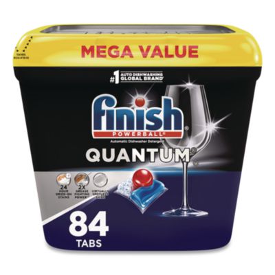 FINISH® Quantum® for our ultimate clean and diamond shine first time, every time. Its advanced chemistry with ACTIVELIFT TECHNOLOGY is effective at breaking down all types of food residues, even 24 hour dried-on stains, without pre-rinsing. The tabs protect and care for your glassware wash after wash and helps them maintain their shine. Our ultimate performance with 15% less chemical weight than FINISH® Classic pressed powder tablets. Application: Machine Dishwashing; Applicable Material: Dishes; Glasses; Utensils; Dirt Types: Cooked-On Grease; Food Particles; Food Stains; Scent: Fresh.
