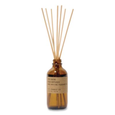 Our Reed Diffusers come in apothecary-inspired amber glass bottles with our signature kraft label and rattan reeds. Low-maintenance scent throw, all day long—no match necessary. Lasts approximately three to four months. Blend of naturally-derived and man-made fragrance oils. The bundle of naturally-harvested rattan reeds absorbs and slowly releases the fragrance throughout your space. Iris Suede Scent. Material(s): Glass/Rattan; Color(s): Amber; Height: 4.25".
