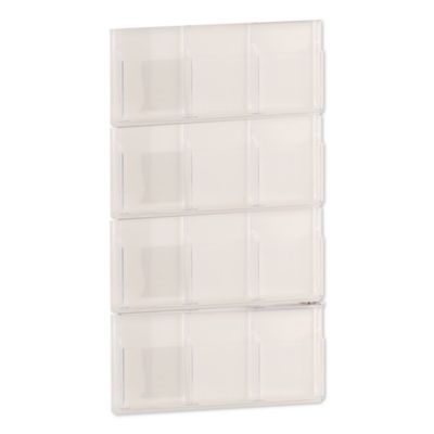 Enhance your office space with these unobtrusive, break-resistant clear plastic displays that seamlessly blend into any environment. Each pocket holds up to 1.75" of material, offering ample space for brochures, flyers or important documents. The new front panel design features an easy-to-clean opening, making maintenance a breeze. These one-piece units require no assembly, providing hassle-free setup. Wall mounting hardware is included, ensuring secure installation wherever you need it. Perfect for keeping your office organized and your materials accessible, these displays combine functionality with a sleek, professional look. 12 Magazine Display. Color(s): Clear; Color Family: Clear; Overall Width: 30"; Overall Depth: 2".