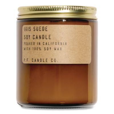 Hand-poured into apothecary inspired amber jars with our signature kraft label and a brass lid. Ideal size for desks, countertops and nightstands. Made with phthalate-free fragrance oils. P.F. scents are meant to enhance a space rather than overpower it, and are especially ideal for people with scent sensitivities. Candle Type: Jar; Scent: Iris Suede; Approximate Burn Time: 50 Hours; Volume Capacity: 7.2 oz.