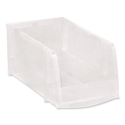 Transport items without difficulty by using this modular stacking bin. With clear plastic material, this stacking bin provides an easy way to see what's inside, and the container has a compact design, making it easy to take with you wherever you need to go. Delivers a convenient way to store staples, journals, folders, electronics and other small items. Medium. Number of Compartments: 1; Capacity (Volume): 1.6 qt; Material(s): Plastic; Material Family: Plastic.