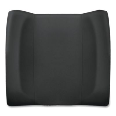 Attach this backrest cushion to an office chair to achieve comfort while sitting for extended periods. Supports the entire back. The cushion is made with high-density polyurethane foam that retains its shape and helps promote neutral back posture while providing firm, responsive support. This ergonomic chair cushion includes an adjustable strap to help hold it in place on a variety of office chairs. The cushion's soft, brushed cover is removable for easy cleaning. General Category: Seating Accessory; Sub-Category: Backrest; Color(s): Black; Color Family: Black.