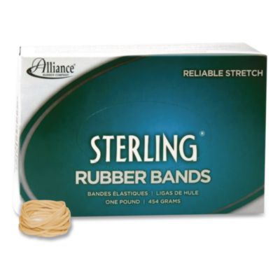 Featuring an excellent count per pound, Sterling® Rubber Bands are a great value for all your needs. A high percentage of natural-rubber latex delivers a reliable stretch with a moderately firm hold. From the office to the home to the workshop, these bands are recommended for general-purpose tasks where fast-application and repeated-use are most important. Approximate Band Count: 3,400; Band Trade Size: 12; Band Width: 0.06"; Band Length: 1.75".