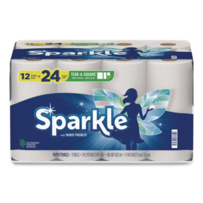 Each Tear-A-Square® Double Roll Towel is equal to two regular paper towel rolls, so you can change the roll less often. These towels with Thirst Pockets® are strong for everyday messes, Sparkle Tear-A-Square® Paper Towels are the smart choice for a simple, affordable and effective cleaning routine! Choose from full, half, or quarter-sheet sizes for daily kitchen and household cleanup—with even more uses for arts and crafts, DIY projects, outdoor tasks and more! Specially designed with an extra perforation on every paper towel sheet—putting you in control of how much towel you use for the task at hand. Towels are just right for cleaning up your everyday messes without cleaning out your piggy bank. Whether you need to wipe up a mess in your kitchen, take care of small drips and dribbles or clean little hands and faces, with Sparkle Tear-A-Square®, you can choose just the right amount of paper towel you need so you can spend less on your everyday messes. Towel/Wipe Type: Perforated Roll Towels; Material(s): Paper; Number of Plies: 2; Color(s): White.