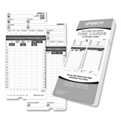 Easily and accurately keep track of your employees' time and attendance with these time cards. Capture every punch and calculate hours across four columns. Size: 7.37 x 3.37; Time Period: Monthly; Printing Sides: Two Sides; Card Quantity: 50.