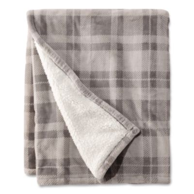 Wicked Plush Sherpa Throw, 50 x 60, Harbor Gray Plaid