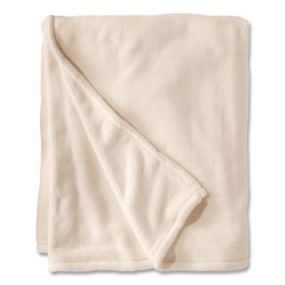 Soft feel and substantial weight. Made from high-pile PrimaLush™ that's brushed on both sides for an extra plush feel. Generously sized, perfect as a cozy wrap or bed layer. Machine wash. Dry on no-heat setting. Wash once separately before using. Dimensions: 50" x 60"; Color(s): Antique White; Material(s): High-Pile PrimaLush™.